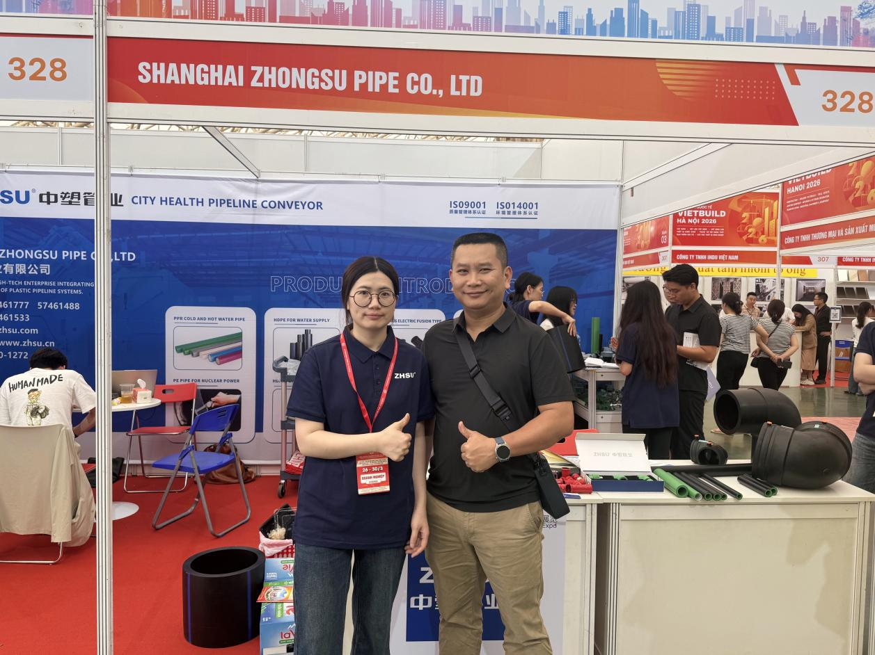 El 26 de marzo de 2026, se inauguró grandiosamente la Exposición Internacional VIETBUILD Ha Noi 2026 en el Centro Nacional de Convenciones de Vietnam. Shanghai Zhongsu Pipe Co., Ltd tuvo una fuerte aparición con su gama completa de productos, incluyendo Tuberías de PP-R y accesorios, series de suministro y drenaje de agua de PE, series de gas de PE y series de energía nuclear de PE.